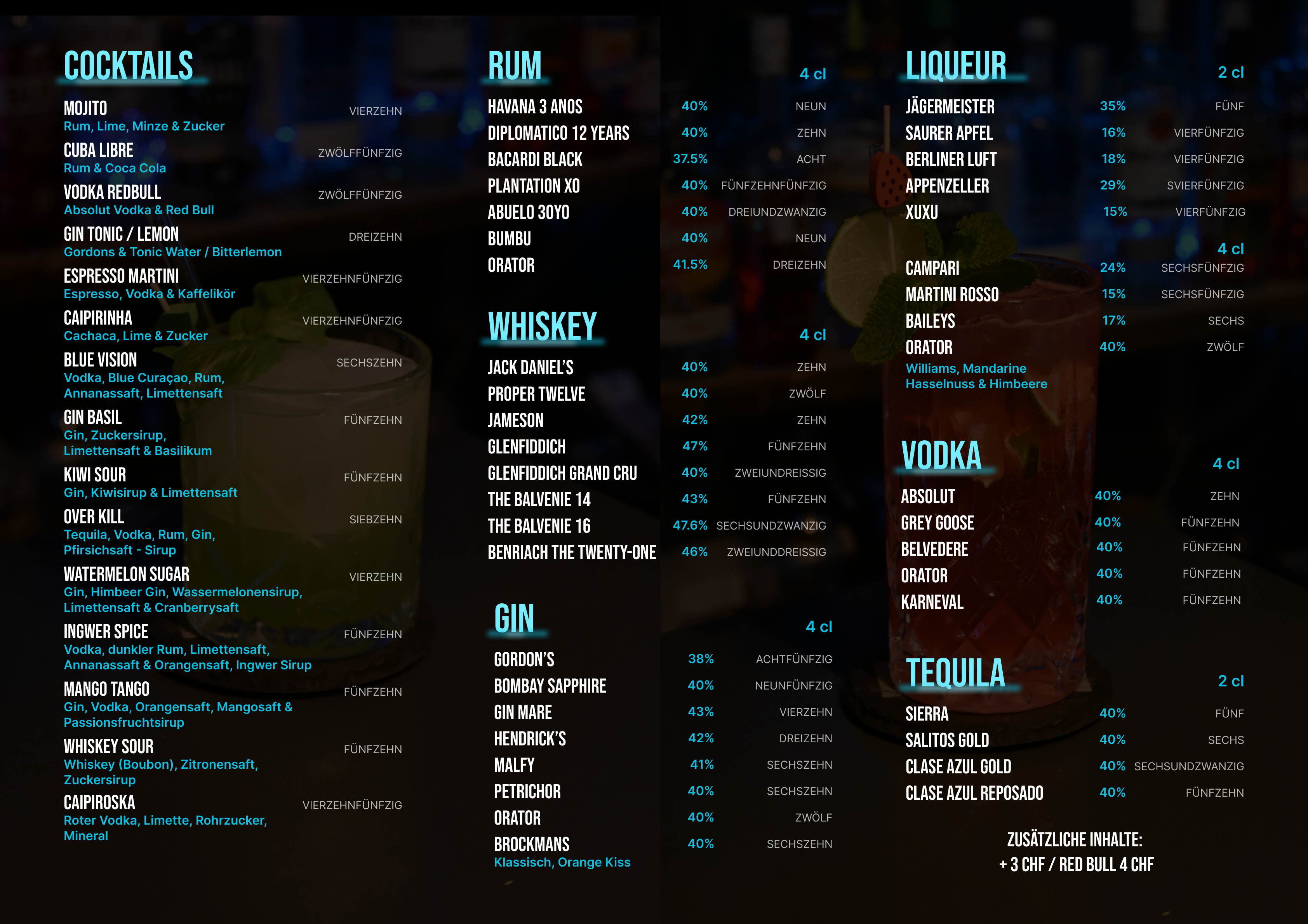CHF 15.00Vodka, dunkler Rum, Limettensaft, Ananassaft & Orangensaft